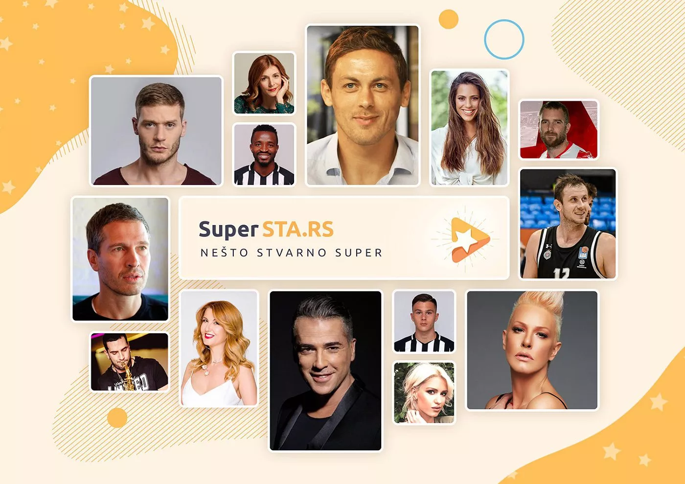 SUPERSTA.RS je tu da svaki važan trenutak u životima naših bližnjih učini još lepšim, jer okuplja fenomenalne ličnosti iz svih oblasti, od sporta, preko umetnosti, novinarstva, glume do muzičke industrije i šou biznisa generalno. Zvezde nam nikada nisu bile ovako blizu, da svojim autentičnim čestitkama oboje osmehom dane u našim kalendarima. Aleksandar Radojčić, Bojana Stefanović, Novak Đoković, Ammar Mešić, Nemanja Matić, Željko Joksimović, Vesna Dedić, Dušan Kecman, Novica Veličković, Milan Borjan, Tijana Dapčević, Anja Mit, su samo neka od poznatih lica koja će vam pomoći da zajedno obradujete drage osobe i proslavite važne datume i postignuća u njihovim životima.