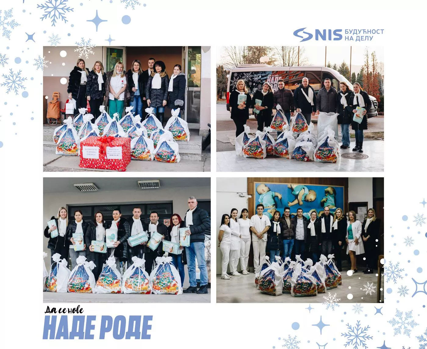 Poklon pakete, koji sadrže artikle domaćih proizvođača, a koji su neophodni majkama i bebama po izlasku iz porodilišta, u prvim danima 2023. godine dobiće po 15 prvorođenih beba u porodilištima u Vranju, Zaječaru, Leskovcu, Kruševcu, Boru, Ćupriji, Paraćinu, Knjaževcu, Sremskoj Mitrovici, Užicu, Pirotu, Loznici, Šapcu, Vršcu i Valjevu. Veliki doprinos ovoj prazničnoj akciji dali su članovi Kluba volontera kompanije NIS koji su donirali pelene za jednokratnu upotrebu kako bi obogatili sadržaj paketa koji je obezbedila kompanija, dok su se ujedno i nesebično angažovali kako bi pokloni za bebe na vreme bili dopremljeni do odabranih porodilišta.