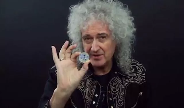 „Ovo je jedan ‘ko bi rekao’ trenutak. Imamo kovanicu našeg kraljevstva, vrednu pet funti, koju je izradila kraljevska kovnica“, kazao je gitarista grupe Brajan Mej.