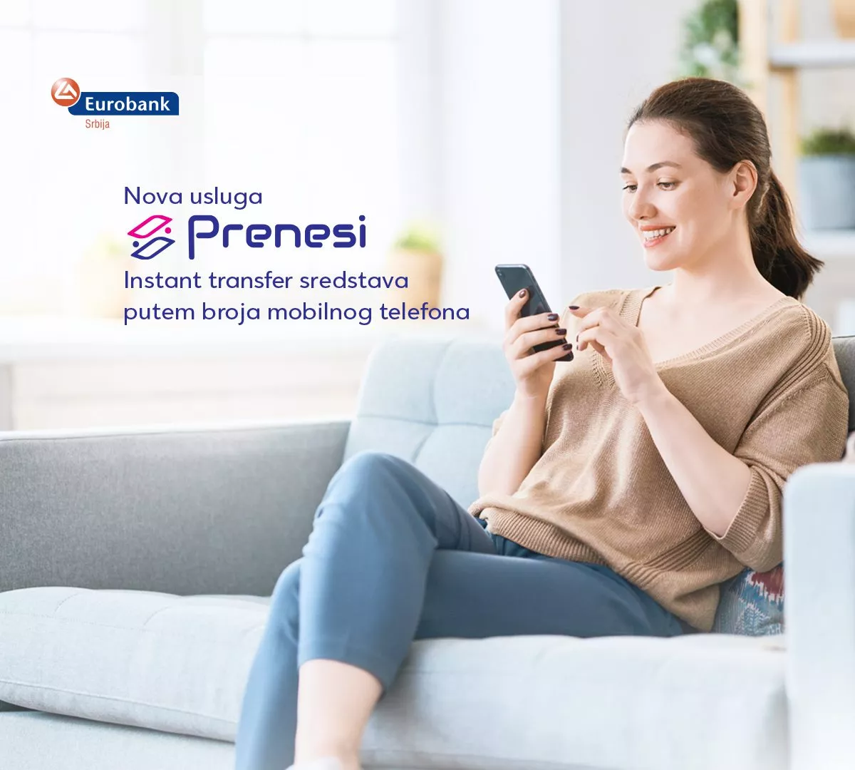 Eurobank je prva na tržištu Srbije u svoj m-Banking portfolio uvrstila uslugu koja na brz i jednostavan način omogućava instant transfer sredstava. Zahvaljujući opciji „Prenesi”, koja je razvijena u saradnji sa Narodnom bankom Srbije, potrebno je samo u mobilnu aplikaciju uneti broj mobilnog telefona osobe kojoj se sredstva šalju ili izabrati broj iz imenika, kao i iznos. Jedini preduslov je da osoba kojoj se šalje novac bude registrovana za ovu uslugu, što je takođe moguće uraditi u samoj m-Banking aplikaciji.