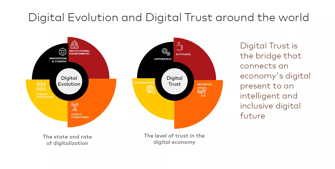 Ovogodišnji Index razmatra dve komponente: digitalnu evoluciju i digitalno poverenje. Istorijski gledano, digitalna evolucija prolazi kroz veliko ubrzanje od fizičke polazišne osnove do digitalne sadašnjosti. Digitalno poverenje je most koji povezuje putovanje od digitalne sadašnjosti do pametne i inkluzivne digitalne budućnosti.