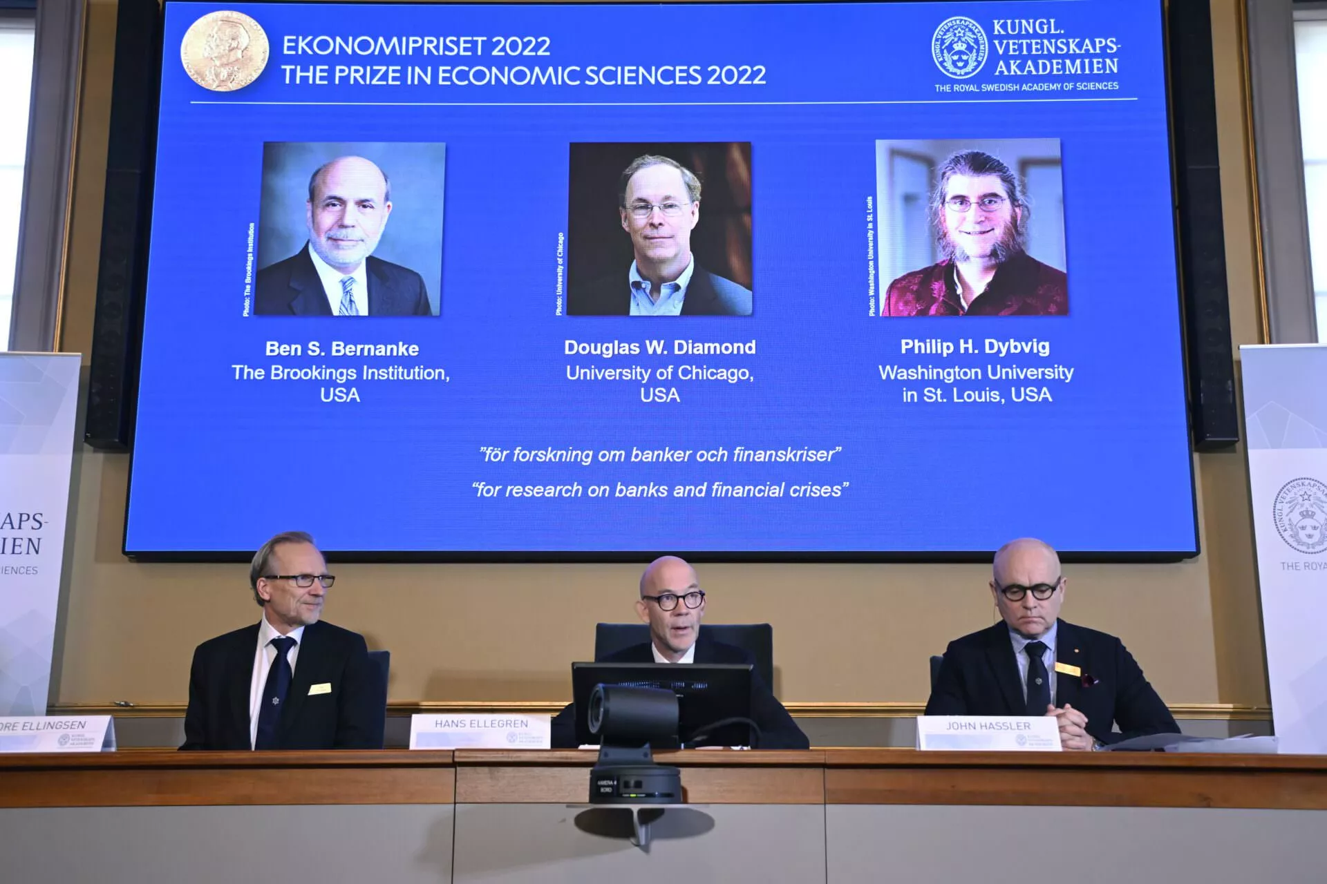 To su Ben Bernanke (Bernanke), bivši predsednik američke centralne banke (FED), i profesori Daglas Dajamond (Douglas Diamond) i Filip Dibvig (Philip Dybvig), saopštio je Nobelov komitet.