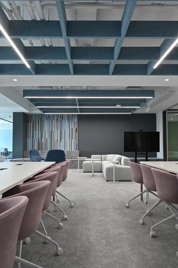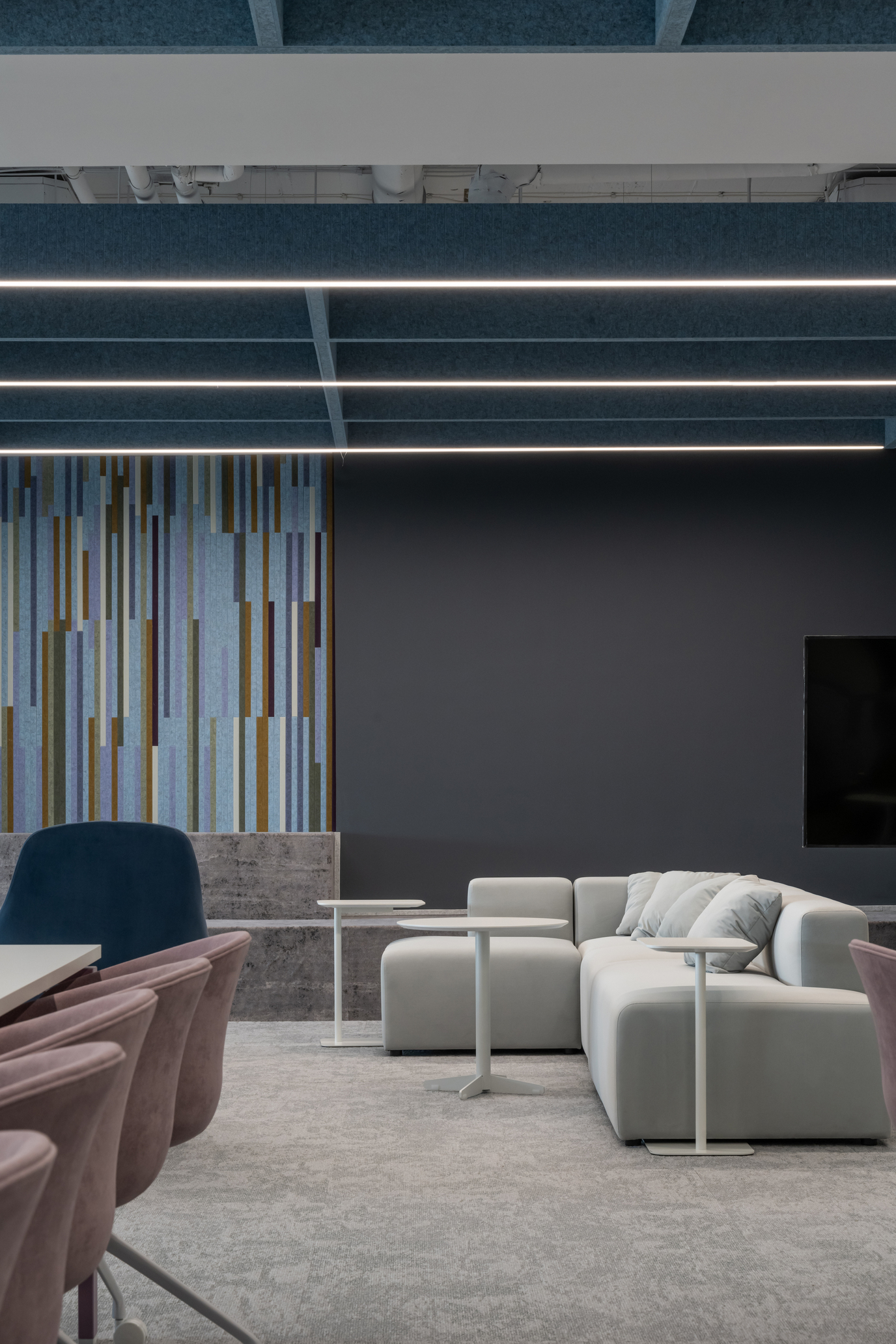 Prostor je pažljivo osmišljen da odgovori na različite potrebe zaposlenih: tihe zone za bolji fokus, fleksibilne prostore za timski rad sa više od 20 tipologija sedenja što je pogodno i za hibridni i svakodnevni rad, konferencijske sale i deo za održavanje događaja.