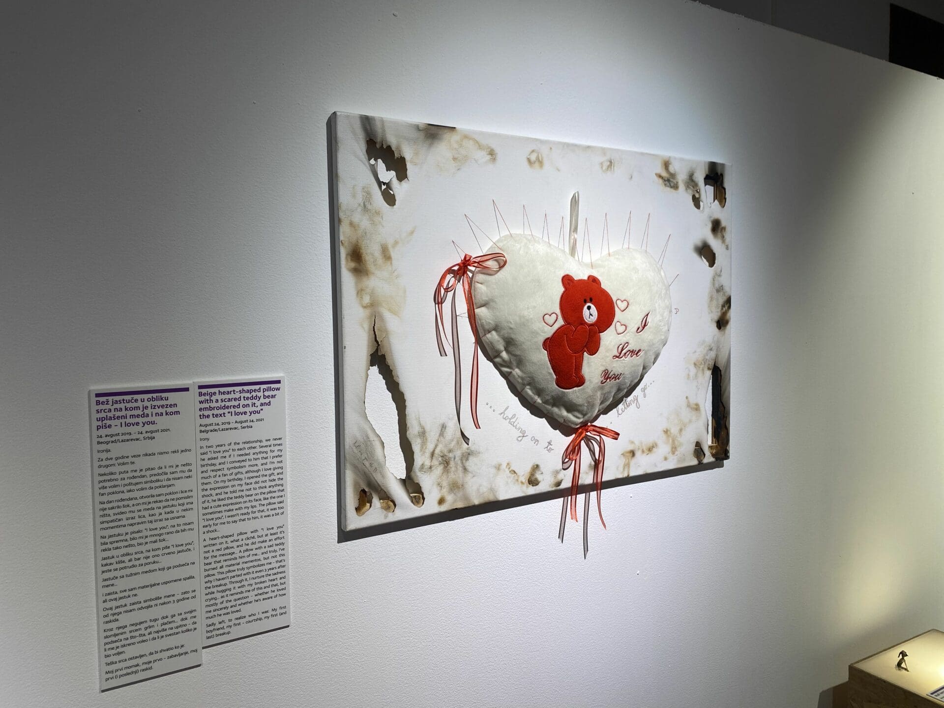„Ono što je specifično sa ovom postavkom jeste da se tiče skoro svakoga od nas jer smo svi prošli kroz ovakve situacije i skoro svako od nas ima neke predmete za ovaj muzej. Tako je i sa posetiocima, skoro svi se zadrže toliko da prođu i pročitaju sve predmete i priče. Postoji deo gde posetioci mogu da ostave i utiske i poruke koji je već toliko ispunjen da dovoljno govori o tome koliko stvarno svi imaju iskustva sa (ne)prežaljenim ljubavima“, navodi Ubović.
