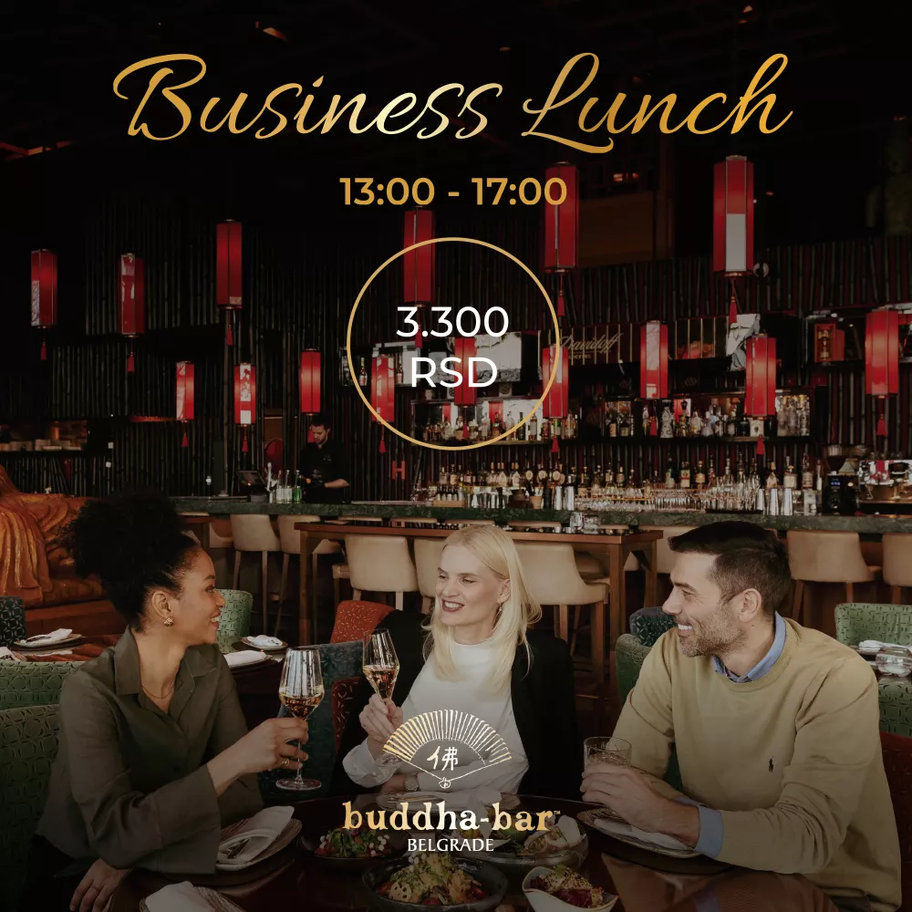 Od danas, svakog dana od 13 do 17 časova, očekuje vas Business Lunch – pažljivo osmišljen meni u tri sleda, idealan za poslovne susrete, pauzu za ručak ili opušten trenutak sa prijateljima, sve to u prepoznatljivom ambijentu Buddha Bara.