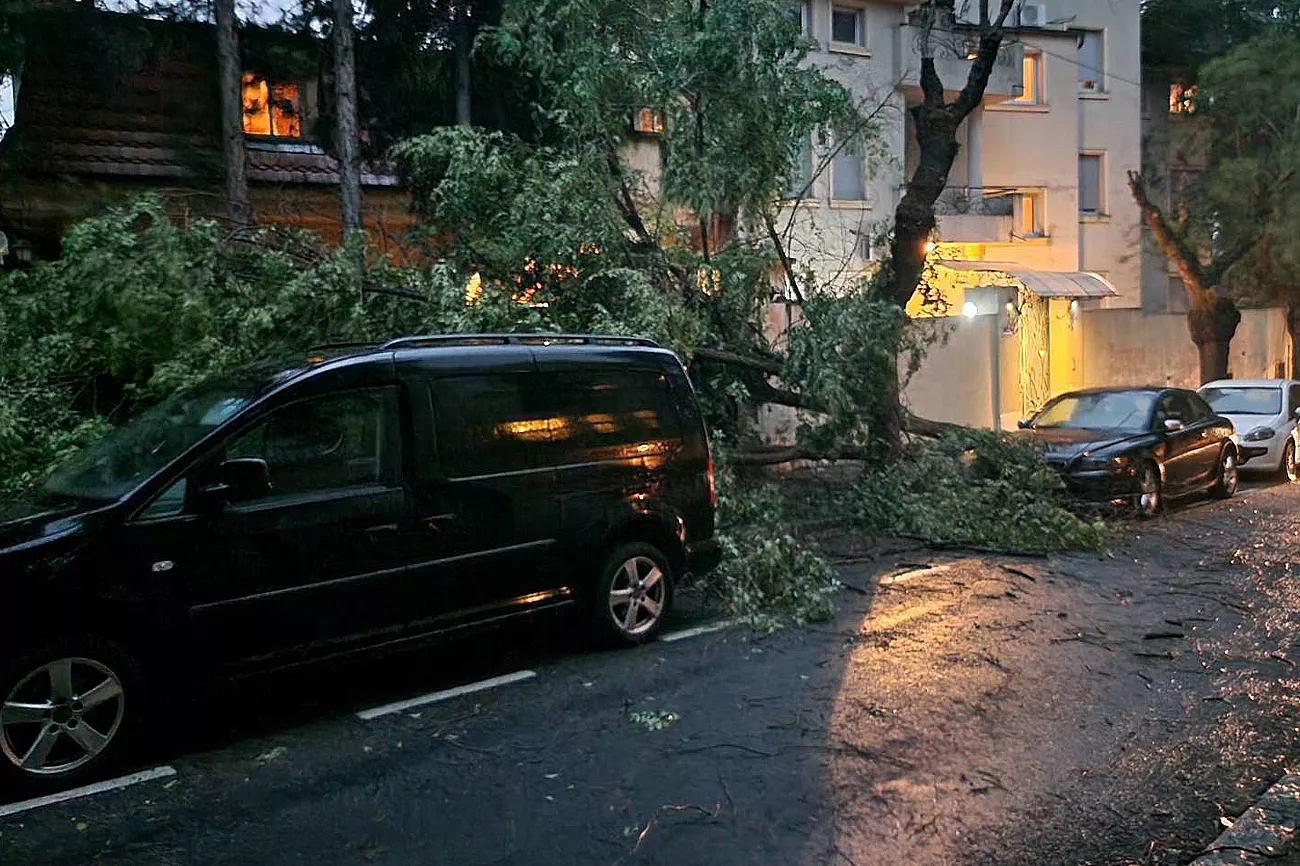 U mnogim gradovima pada obilna kiša i duva jak vetar, koji po gradu ruši granje, drveće i ograde i diže velike oblake prašine. Na Novom Beogradu je čak pao kran.