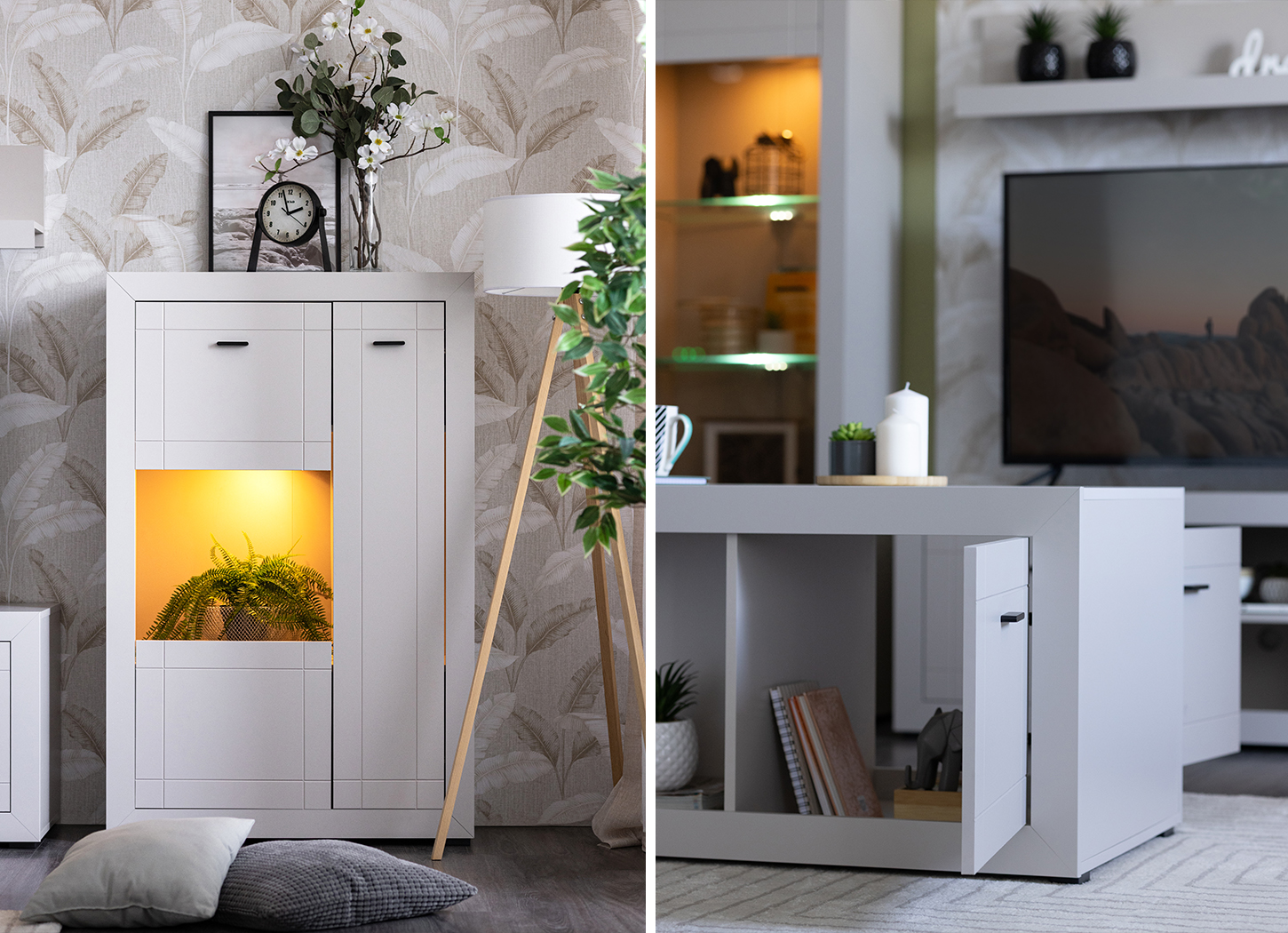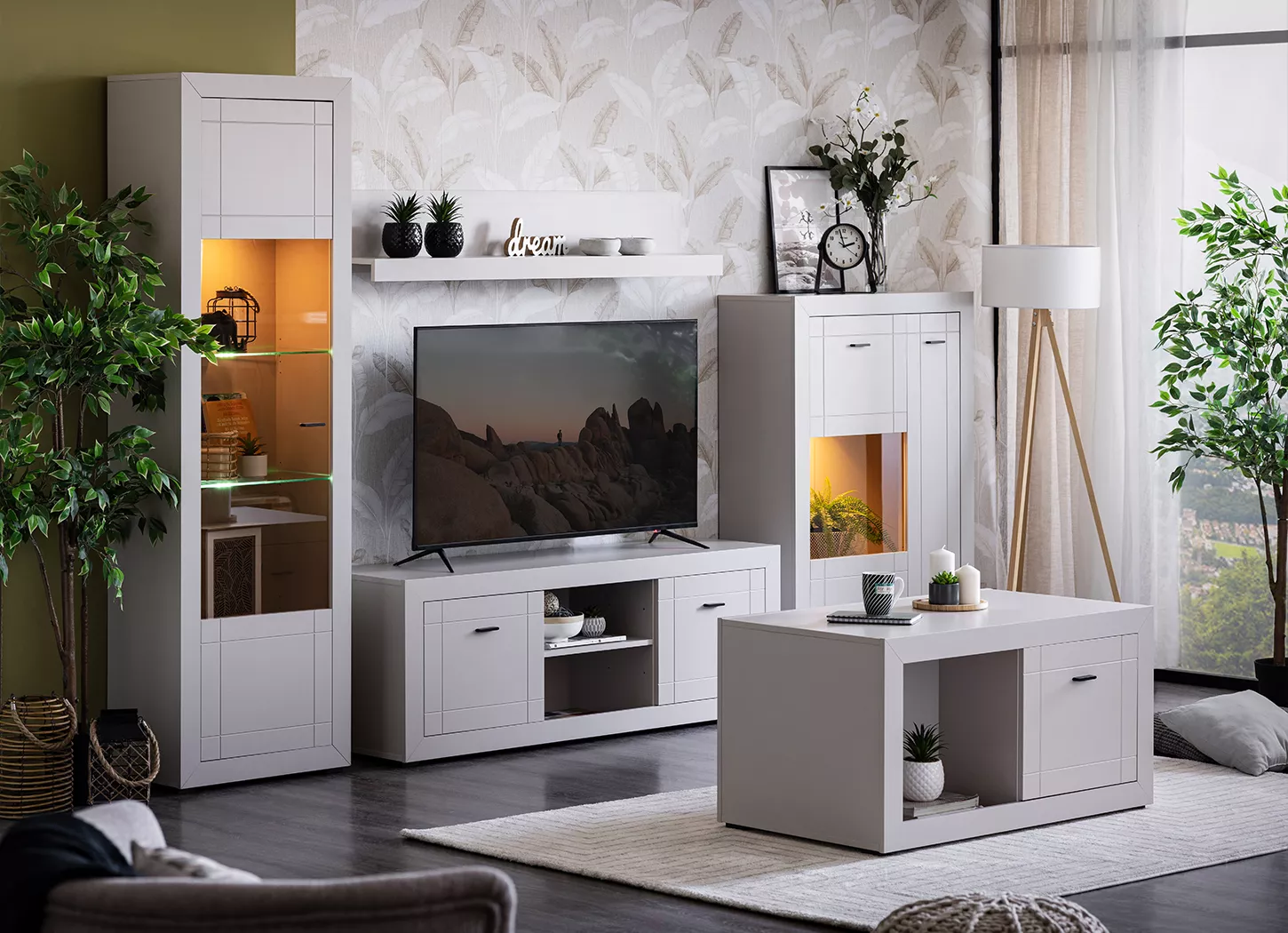Sistem elemenata WARWICK obuhvata šest pažljivo osmišljenih komada nameštaja, čineći ga sveobuhvatinim rešenjem za opremanje dnevne sobe. Zahvaljujući bojama i dizajnu, zavesa MOLY će se savršeno uklopiti u celokupni ambijent, dok će tepih iz Forma Ideale kolekcije pružiti dubinu ambijentu. Bilo da uređujete manji prostor ili prostrani dnevni boravak, elementi ovog sistema omogućiće vam lako kreiranje funkcionalne i estetski skladne celine, a dok će veštačko cveće u saksiji samo doprineti atmosferi.