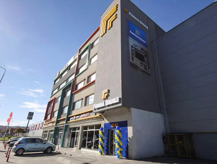 Na 3.000 m2 izložbeno-prodajnog i skladišnog prostora kupcima je predstavljen deo asortimana pločastog i tapaciranog nameštaja Forma Ideale, deo asortimana partnerskog programa, veliki izbor laminata, tepiha, rasvete, dekoracije, bele tehnike, kao i malih kućnih aparata.
