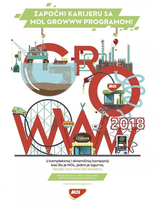 I dalje je otvoren poziv za prijavljivanje za sledeću sezonu nagrađivanog programa MOL Grupe za regrutaciju talenata, Growww 2018, koji svežim diplomcima nudi neverovatnu priliku da započnu svoju karijeru u jednoj od najvećih kompanija u CIE. Kroz ovaj program MOL ima za cilj razvijanje nove generacije stručnjaka iz ove industrije, pružajući im priliku da uče i ispune svoje potencijale u stimulativnom i timskom okruženju.