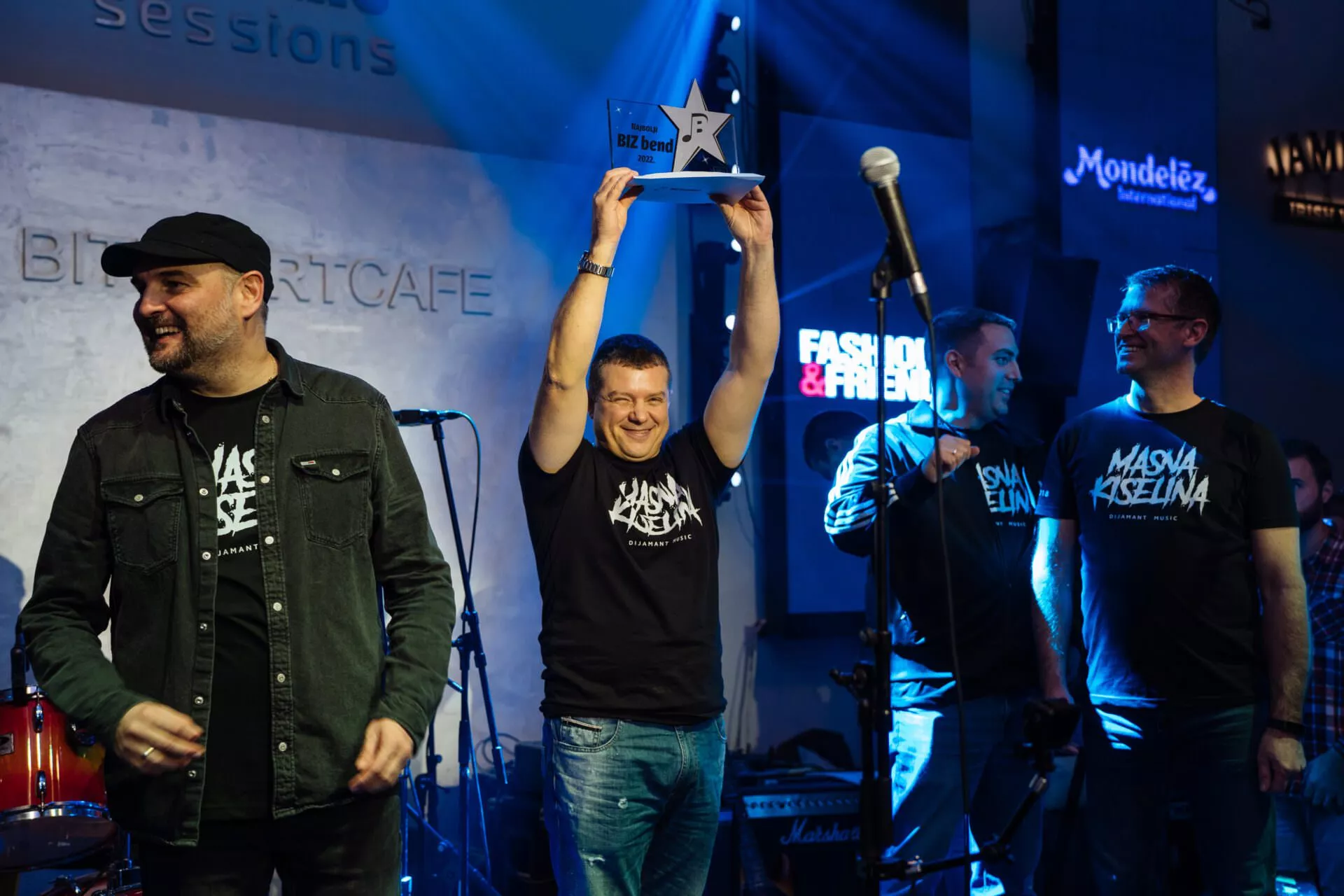 Zaposleni vodećih kompanija na srpskom tržištu svirali su za biznis publiku u Bitef Art Cafeu pod sloganom Let’s Rock It. Pobedu na ovom jedinstvenom muzičkom takmičenju kompanijskih bendova #BIZ bendovi odneo je bend Masna Kiselina, kompanije Dijamant.