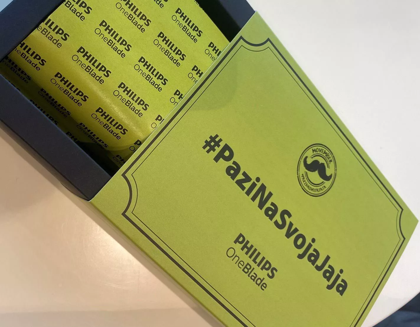S obzirom na to da pokret Movember podrazumeva puštanje brkova, Philips je ovu akciju uvezao sa svojim OneBlade uređajem za stilizovanje brade i brkova, kako bi muškarci mogli da je održavaju pomoću različitih OneBlade nastavaka. Baš zbog toga, da bi se još više govorilo na ovu temu i kako bi doprli do velike grupe ljudi, Philips je najuticajnijim influenserima i vernim saradnicima poklonio OneBlade uređaj uz vaučer za urološki pregled u MediGroup-u, a simpatične reakcije publike izazvala su i čokoladna jaja koja su aludirala na sam slogan ove kampanje.