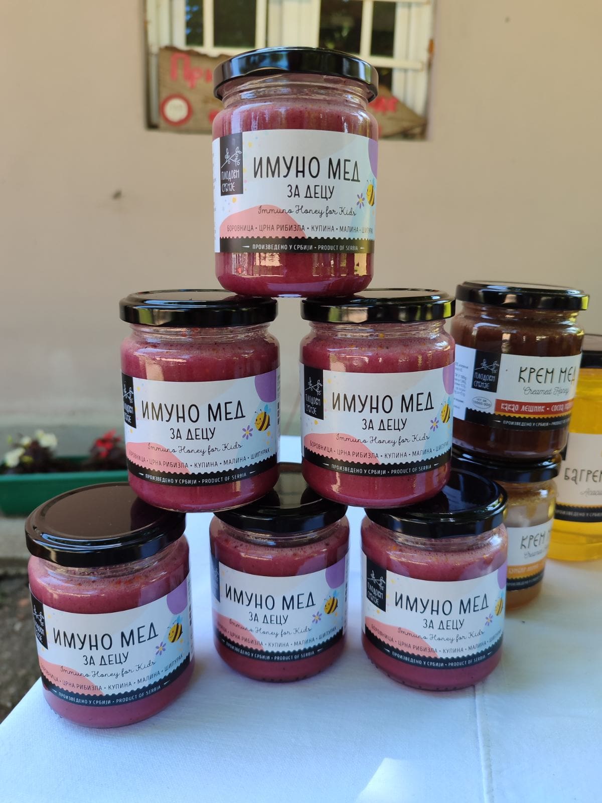 „Naš med možete koristiti kao namaz za palačinke, hleb, peciva, kao dodatak u kafu, čaj, limunadu, frape, kao preliv preko sireva i zamenu za šećer u svim vrstama kolača. Potom smo uvidevši dečiju ljubav prema medu sa malinom izbacili na tržište Imuno med za decu, koji u sebi sadrži: polen,divlju borovnicu, divlju kupinu, malinu, limun, šipurak…“, kaže Danijela.