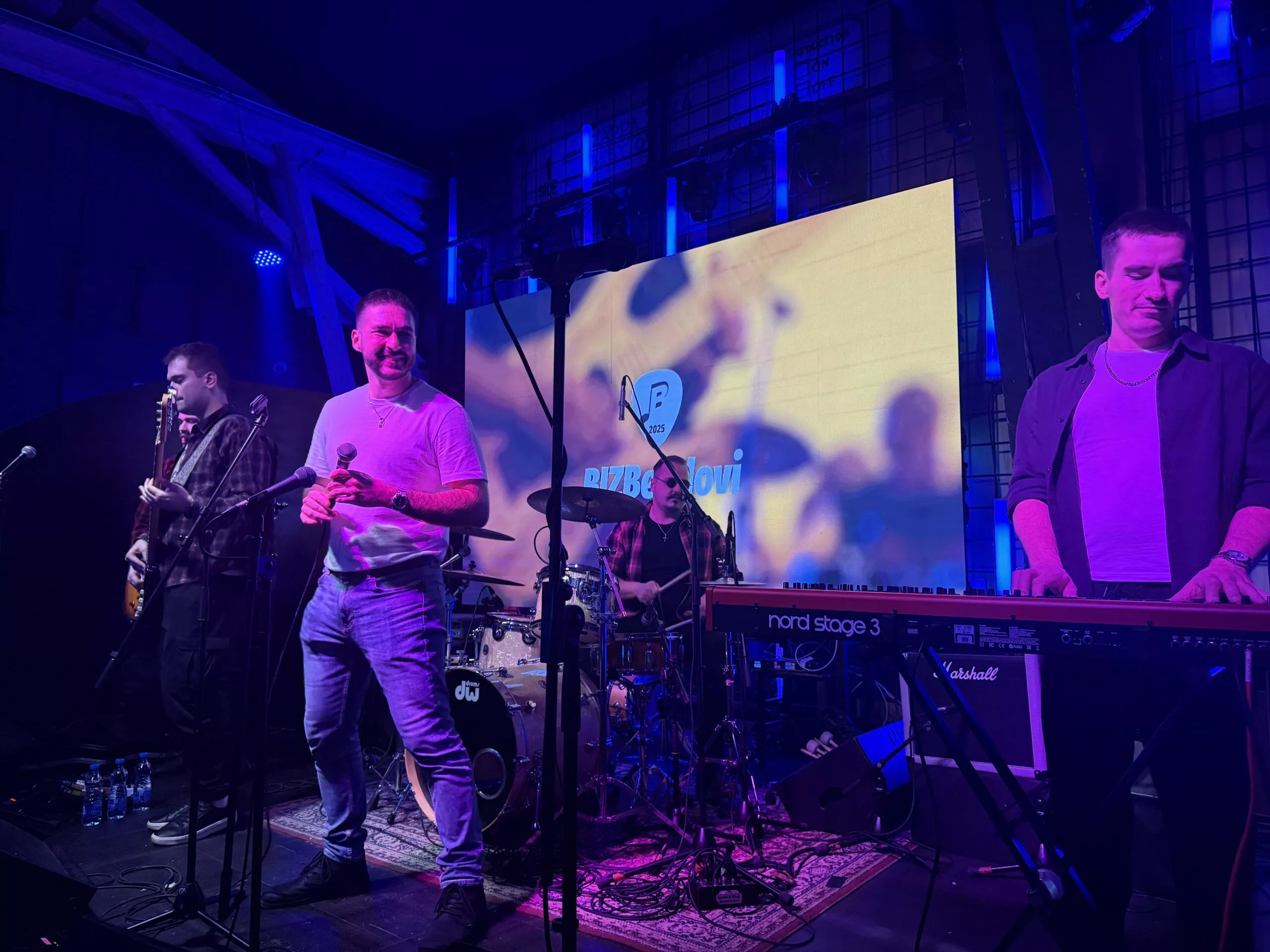 Veče je započelo nastupom benda koji je prošle godine odneo titulu BIZBend 2024 – benda kompanije EIM, fEIMus koji je odsvirao obedničke numere Let me entertain you od Robija vilijamsa i Bitanga i princeza od Bijelog dugmeta.