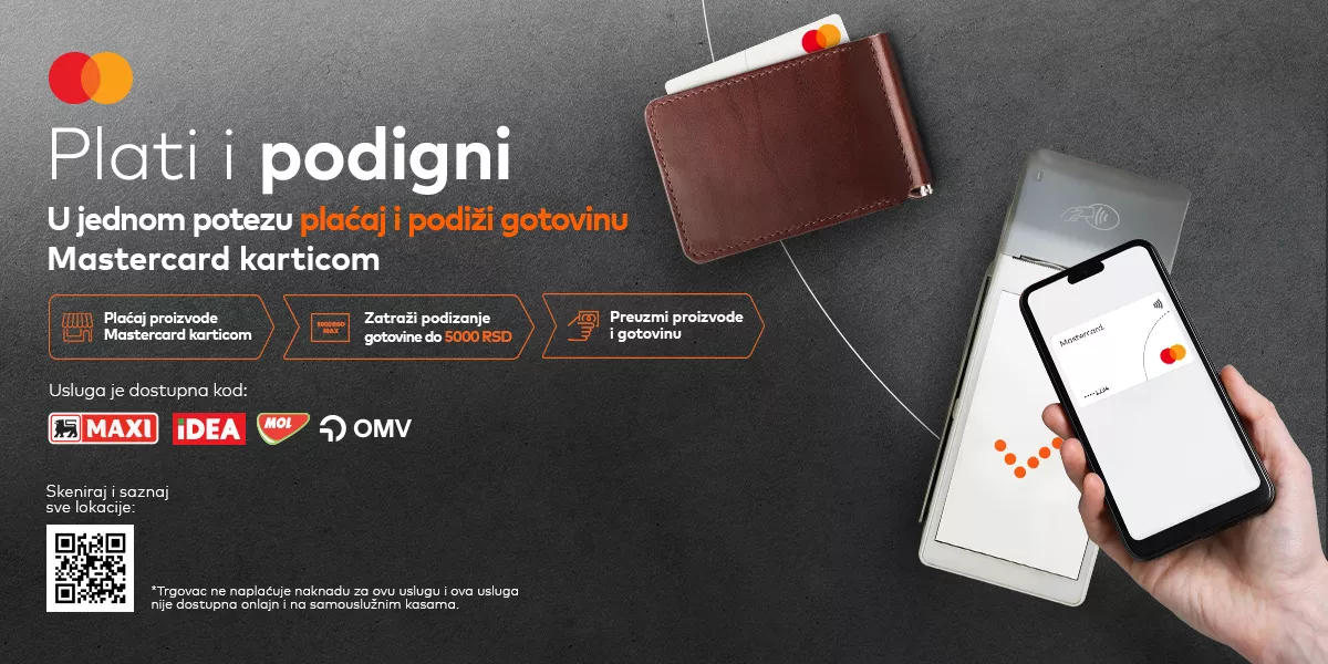 Ova opcija korisnicima pruža praktičan dodatni izbor i štedi vreme, jer omogućava da u okviru jedne transakcije obave i kupovinu i podizanje gotovine do 5.000 dinara. Istovremeno, usluga otvara pristup čitavoj mreži novih lokacija – u prodavnicama, na benzinskim pumpama i drugim mestima na kojima korisnici sada mogu jednostavno doći do gotovine za svoje svakodnevne potrebe.