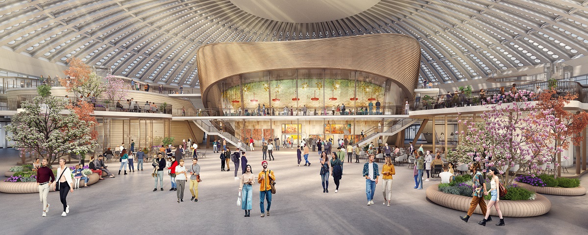 Dosledno prateći arhitekturu Hale 1, kafići, restorani i prodavnice oblikovaće dinamičan unutrašnji trg, savršen za događaje, sezonske markete i pop-up programe. Kružne galerije na prvom i drugom spratu nude raznovrsne sadržaje sa pogledom na spoljašnji trg i unutrašnjost kupole, dok mostovi i stepeništa naglašavaju prostranost i ritmičku strukturu.