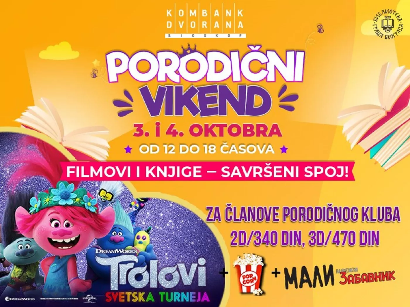 Posle šest meseci pauze u radu bioskopa, nastale usled pandemijske krize, klinci i klinceze će imati prilike da prvi put od ponovnog otvaranja bioskopskih sala, sa svojim roditeljima ili u društvu svoje „ekipe“ uživaju u tradicionalnom Porodičnom vikendu od 12 do 18h pod sloganom FILMOVI I KNJIGE – SAVRŠEN SPOJ.