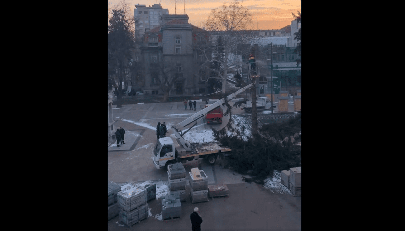 Kako prenose Južne vesti, od tri jelke ostali su panjevi, a radnici su i dalje na terenu i zvuk testere odzvanja centrom Niša.