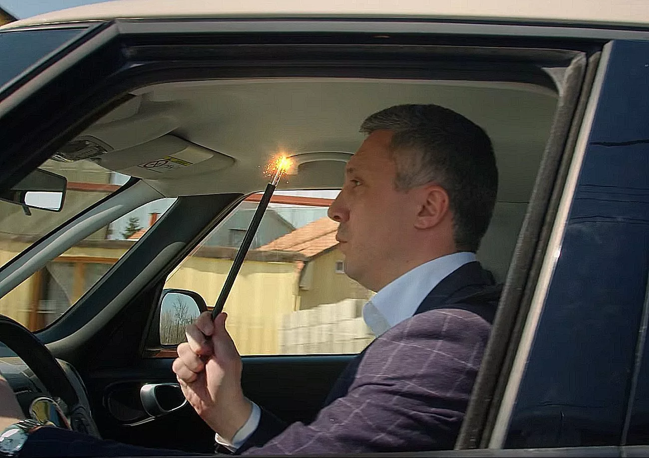 Naime, Obradović u spotu koristi magični štapić da popravi rupu na putu, fabriku koja zagađuje okolinu, rijaliti program na televiziji i govori: