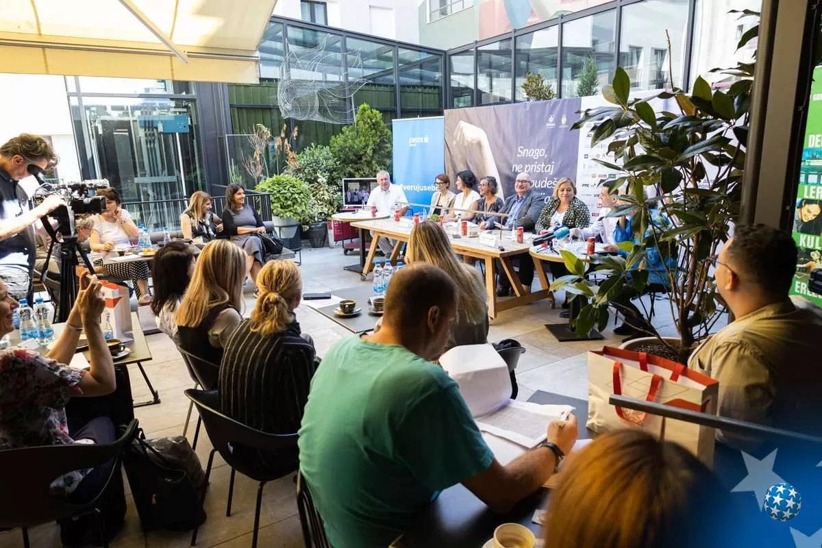 Na konferenciji za medije prisutnima su se obratili zamenica šefa Delegacije EU u Srbiji Plamena Halačeva, direktor Gete Instituta Kristof Feldhues i ambasadorka Grčke Marija Levanti.