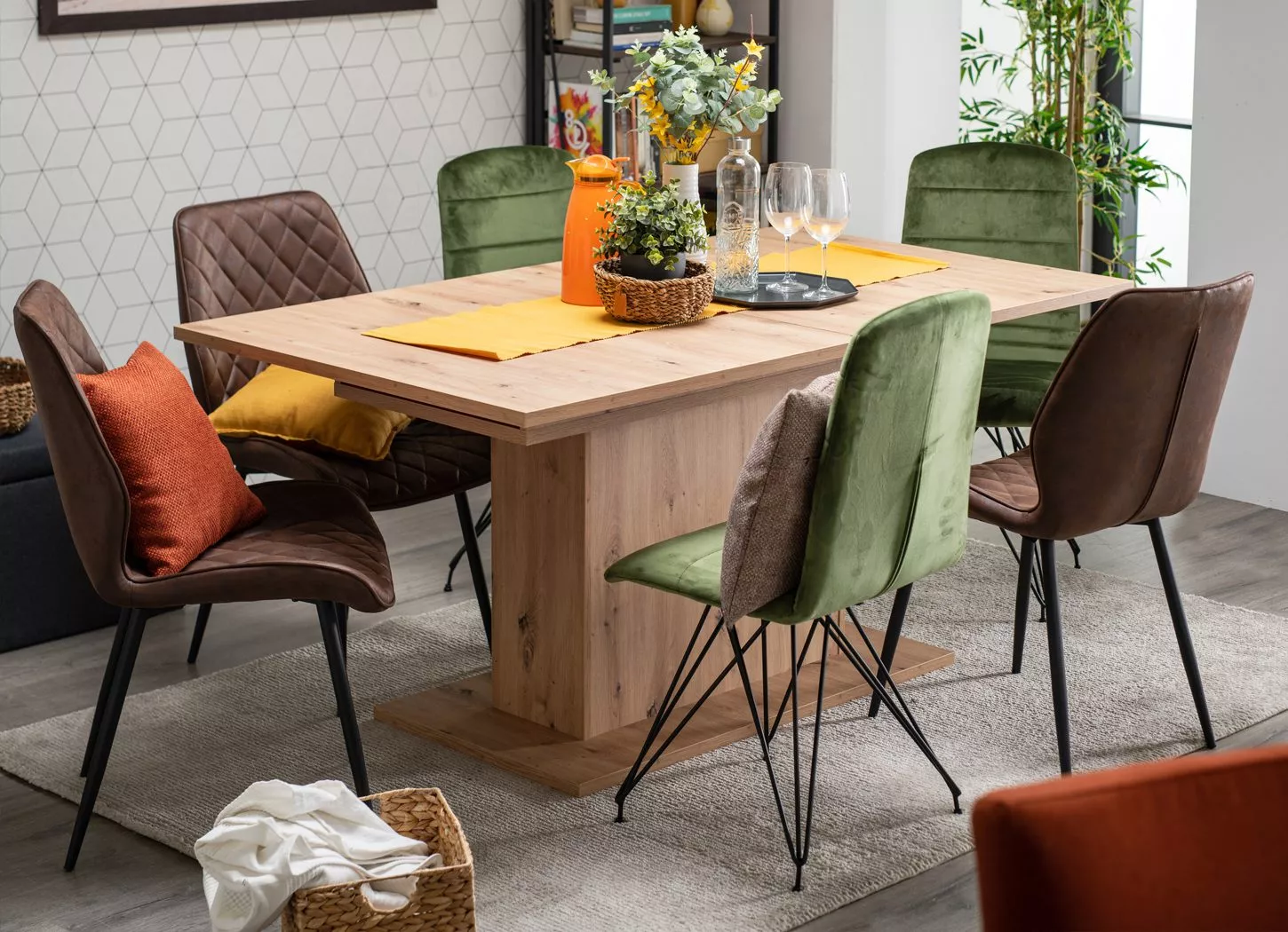 Trpezarije predstavljaju srce doma, a za urbanu trpezariju u jesenjim tonovima birajte tamne palete ili drvo, dok je preporuka da izbegavate bele tonove. Kao novi trend za sledeću godinu najavljuje se integrisanje trpezarije sa ostatkom doma, kroz prirodne materijale i zanimljive površine. Komadi nameštaja koji će kreirati topao i prijatan trpezarijski ambijent su trpezarijski sto SABRINA, a savet je da napravite neočekivanu i smelu kombinaciju sa različitim trpezarijskim stolicama, poput trpezarijskih stolica HTC-316 i trpezarijskih stolica KRIS, kako biste doprineli dinamici prostora.