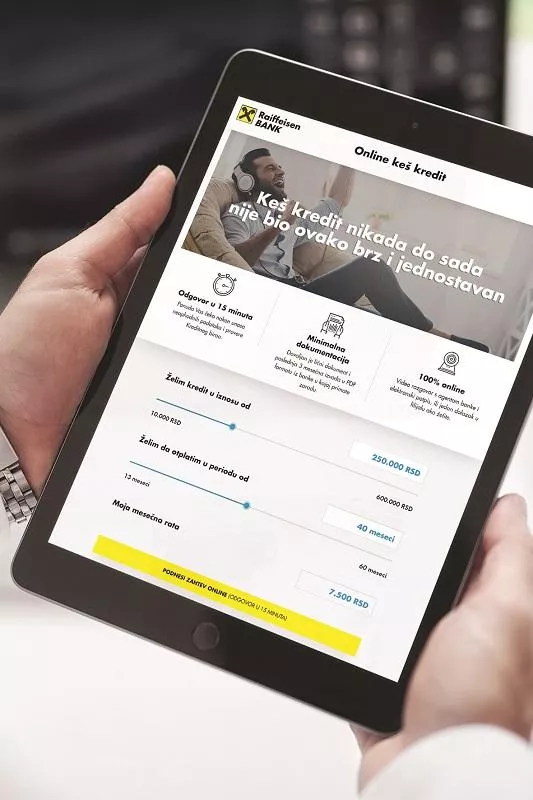 Rajfajzen banka u Srbiji je svim građanima omogućila da celokupan proces od podnošenja zahteva za gotovinski kredit do isplate sredstava na račun, završe putem interneta, i to za svega 30 minuta.
