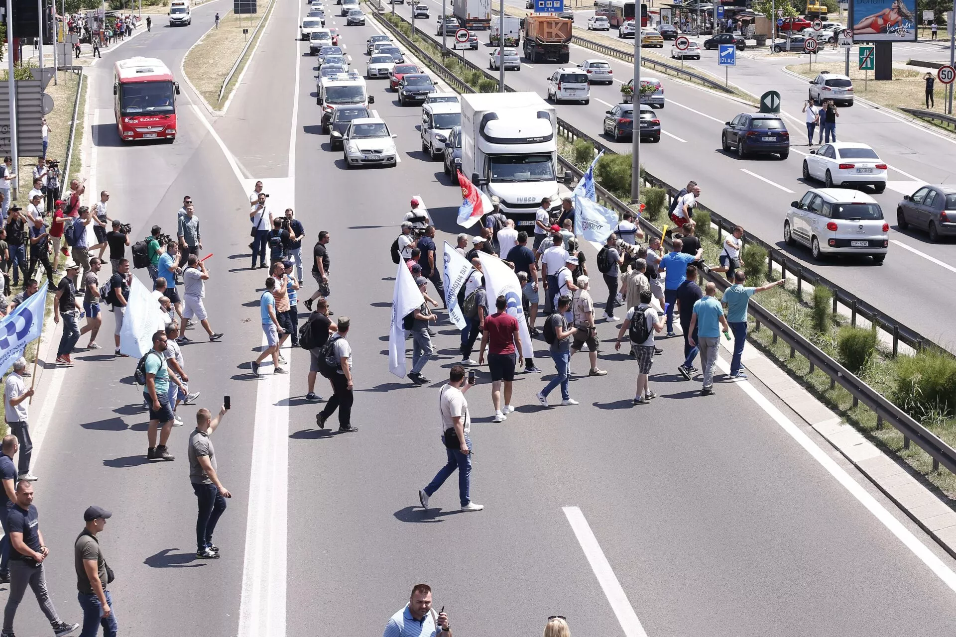 Umesto toga, radnici su odlučili da blokiraju Gazelu. Blokada puta je počela oko 13.10, obe trake autoputa bile su u blokadi, a radnici i predstavnici sindikata su stali u obe trake i blokirali saobraćaj u oba smera.