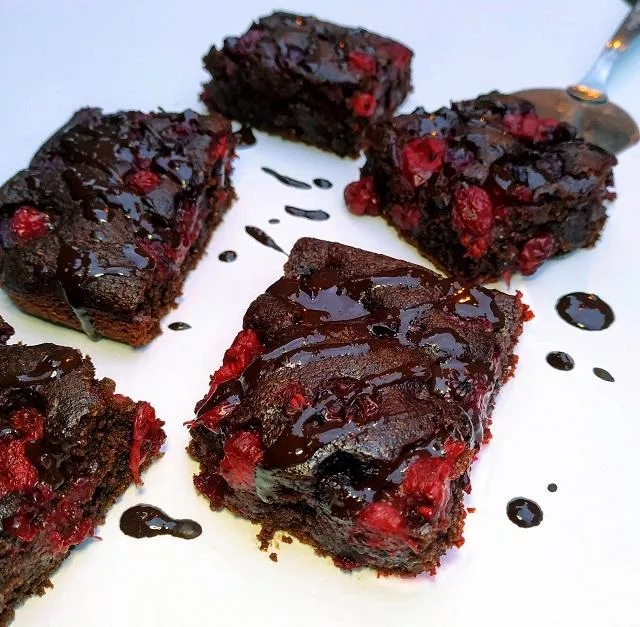 Obavezno probajte da napravite ovaj kolač ili da iskoristite ovaj recept testa kao bazu za tortu. Kombinacija sastojaka je idealna – brauni se tope u ustima, imaju intenzivan čokoladni ukus, a prave se brzo i jednostavno. U testo možete staviti bilo koje bobice po vašem ukusu, meni se najviše dopada miks crvenog voća – maline, ribizle, kupine i višnje. Sastojci su za manji pleh (15x20cm) – od toga će ispasti devet parčića. Možete ih ispeći i u kalupu za mafine.