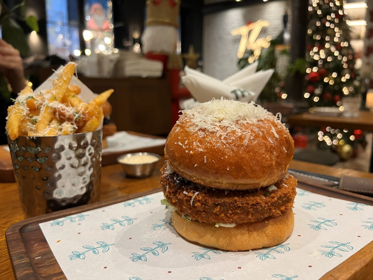 To se najjasnije vidi na primeru Christmas Burgera, koji je postavljen kao glavni adut menija. Sastav je prilično konkretan i ne ostavlja prostor za „praznu priču”: majonez od žalfije, coleslaw od kupusa, celera, jabuke i crvenog luka začinjen majonezom, burger od cepkane prasetine, čatni od suvih šljiva, svež vlašac i microplane parmezan.