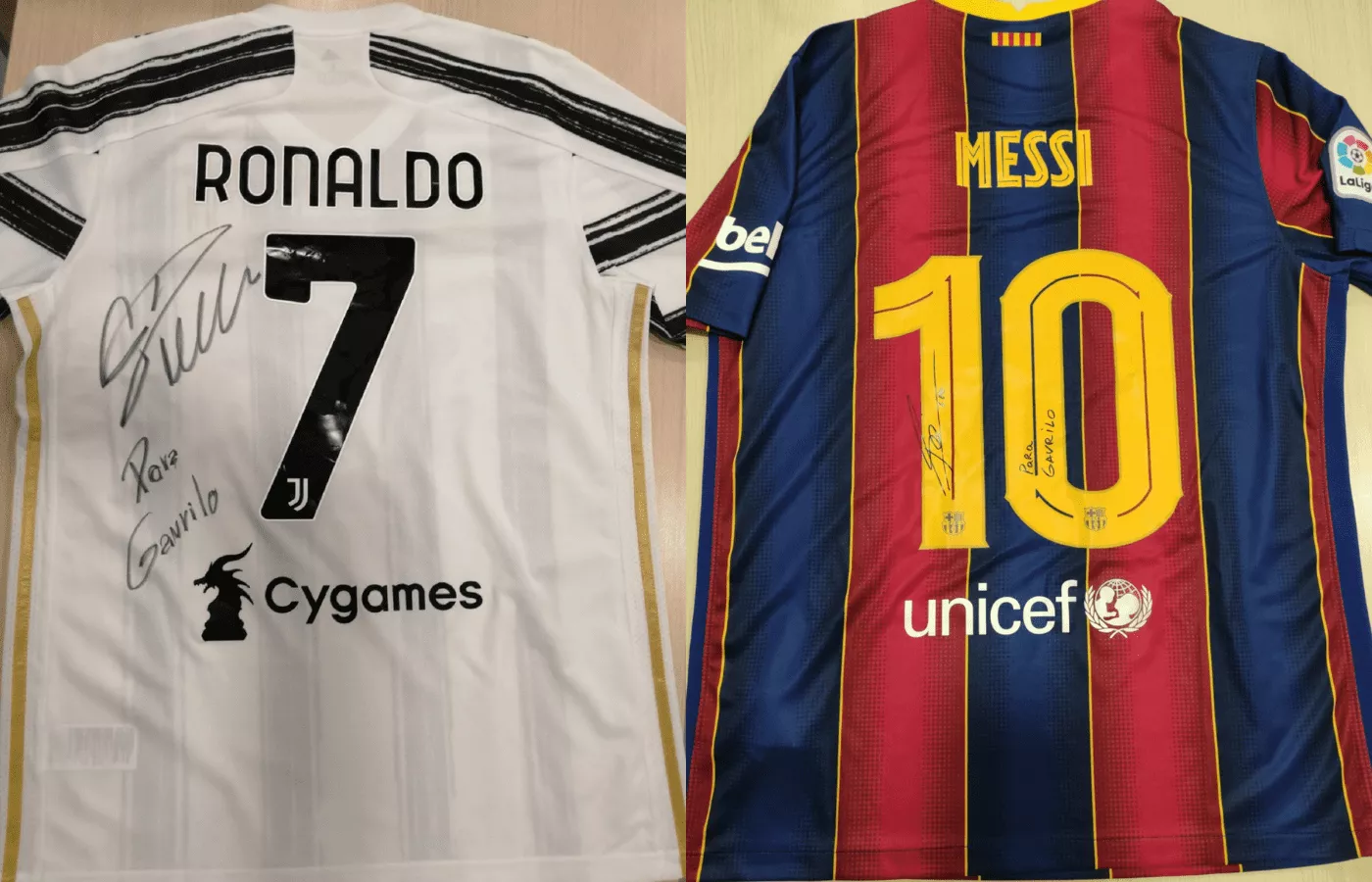 Kompanija Mozzart spojila je Mesija i Ronalda zahvaljujući fudbalskim menadžerima iz agencije LIAN Sports Nikoli Damjancu i Faliiju Ramadaniju. U saradnji sa organizacijom Zajedno za život, Mozzart je stavio njihove potpisane dresove na humanitarnu licitaciju, kako bi se prikupila sredstva za lečenje. Kao i za Ronaldov, ova kompanija dala je i početnu ponudu od milion dinara i za Barsinu desetku sa posvetom “para Gavrilo”.