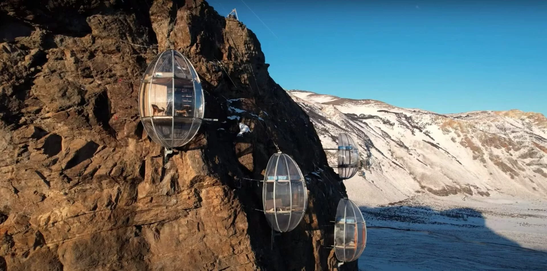 Smeštaj podrazumevaju prozirne kapsule koje vise sa kamenog zida skoro 275 metara. Pristup uključuje planinarenje duboko unutar argentinske Patagonije, nakon čega sledi via ferrata. Za ovo iskustvo su potrebni pojasevi, kacige i značajna doza hrabrosti.