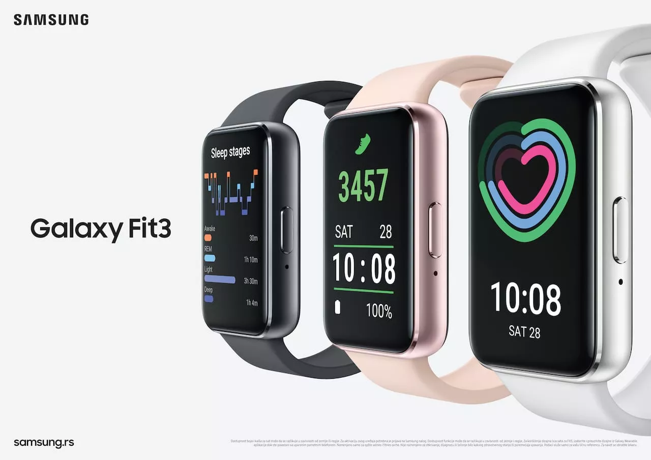 Galaxy Fit3 najnoviji je nosivi uređaj kompanije Samsung, napravljen je od aluminijuma, sa novim kućištem sa širim ekranom, što korisnicima omogućava da prate podatke o svom zdravlju i dobrobiti – od svakodnevnog vežbanja do mirnog sna – non-stop direktno na ručnom zglobu.
