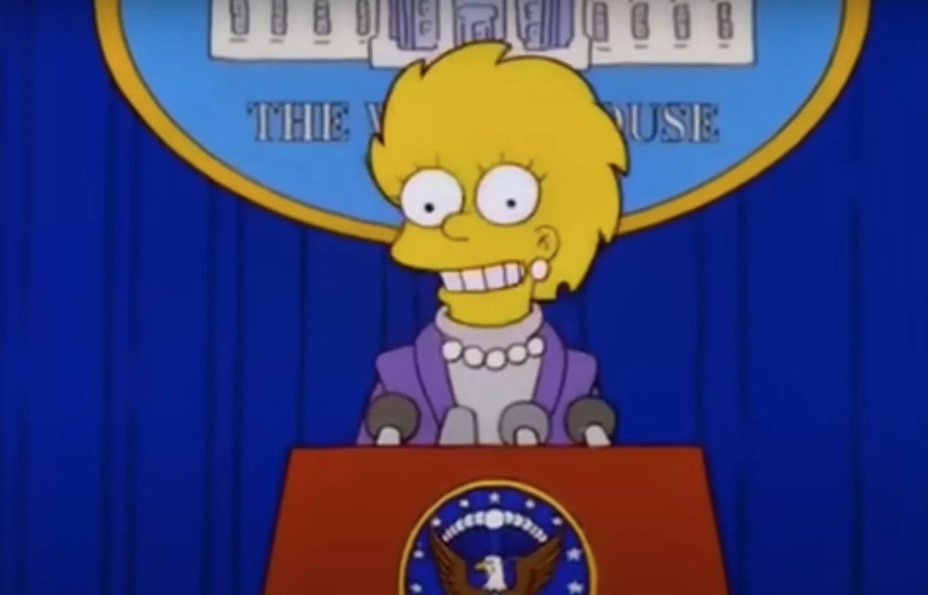 „Simpsonovi“ bi mogli ponovo da predvide budućnost. Epizoda, koja je emitovana 2000, naizgled je otkrila nove detalje o tome šta bi uskoro moglo da se desi. U epizodi ,,Bart to the Future“, Lisa Simpson postaje predsednica i nosi ljubičasto odelo i bisere koji su neverovatno slični onome što je Kamala Haris, koja se sada kandiduje za predsednika, nosila kada je inaugurisana kao potpredsednica.