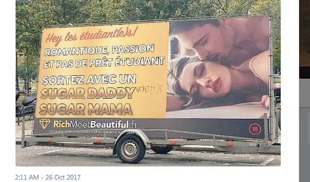 Kontroverzni sajt za upoznavanje “RichmeetBeautiful” (Bogati upoznaju lepe), lansirao je kampanju čija su ciljna grupa studenti u Francuskoj, i nudi im šansu za “romansu i strast” sa “Slatkim taticama i slatkim mamicama” (Sugar daddies & sugar mamas), a poručuju im i da više ne brinu o svojim školarinama. Inače „sugar daddy“ je poznati izraz koji označava bogatog, starijeg muškarca koji daje poklone mlađoj ženi ili devojci, u zamenu za seksualne usluge (a retko samo za njeno društvo).