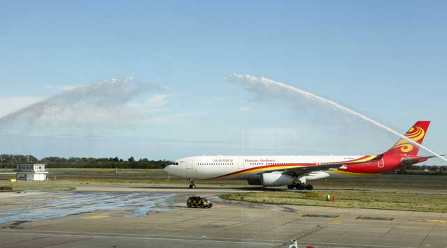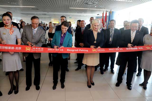 Na beogradski aerodrom „Nikola Tesla“ u 9.14 sati sleteo je avion na prvom letu na novouspostavljenoj avionskoj liniji izmedju Pekinga i Beograda.