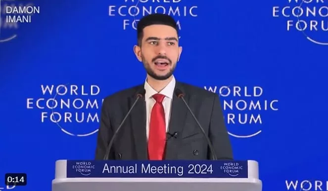 Ovaj video ustvari je satirični snimak Damona Imanjaija, iranskog producenta i umetnika. U “obraćanju” u Davosu kaže: