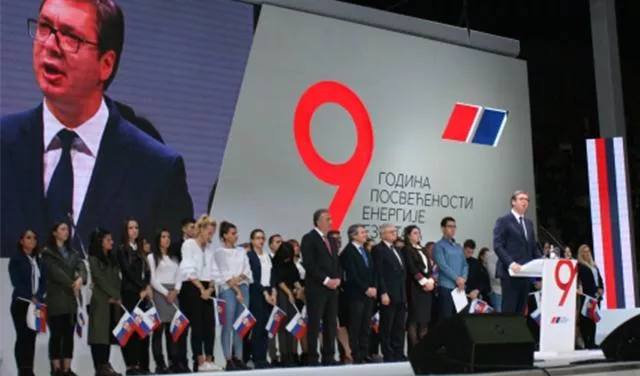 Srpska napredna stranka je deveti rođendan obeležila 21. oktobra na beogradskom stadionu Tašmajdan, a himnu je na svečanosti izvodio Hor RTS s dirigentom Bojanom Suđićem.