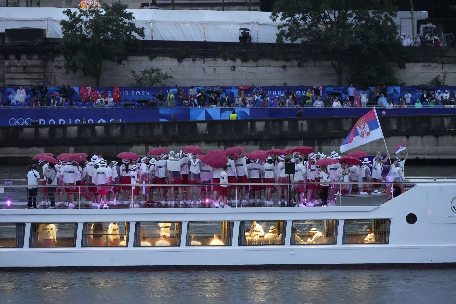 Zatim su se ređali timovi iz različitih zemalja, svi sportisti su na velikim brodovima. Ljudi su izašli na sve terase okolnih zgrada, oni najbolje uživaju u Parizu.