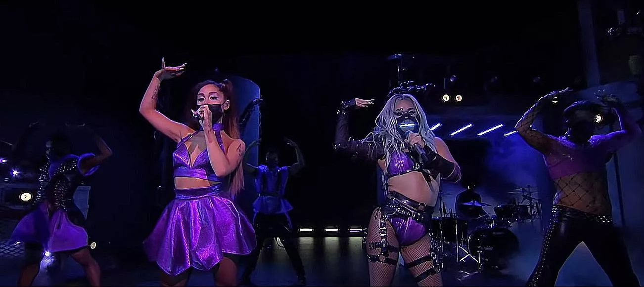 Još jedno njeno pojavljivanje u javnosti bilo je upamćeno po veoma zanimljivoj zaštiti od koronavirusa, U duhu pesme koju je snimila sa Arijanom Grande „Rain on me“, njen autfit imao je motive kišnih kapi, uz dodatak ružičaste lateks maske koja se obavila oko celog njenog lica.
