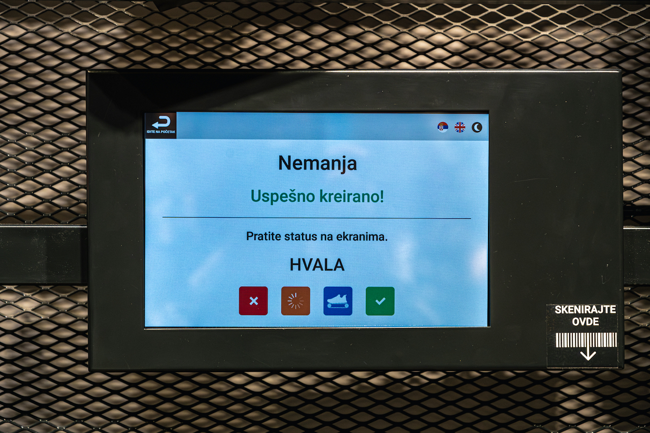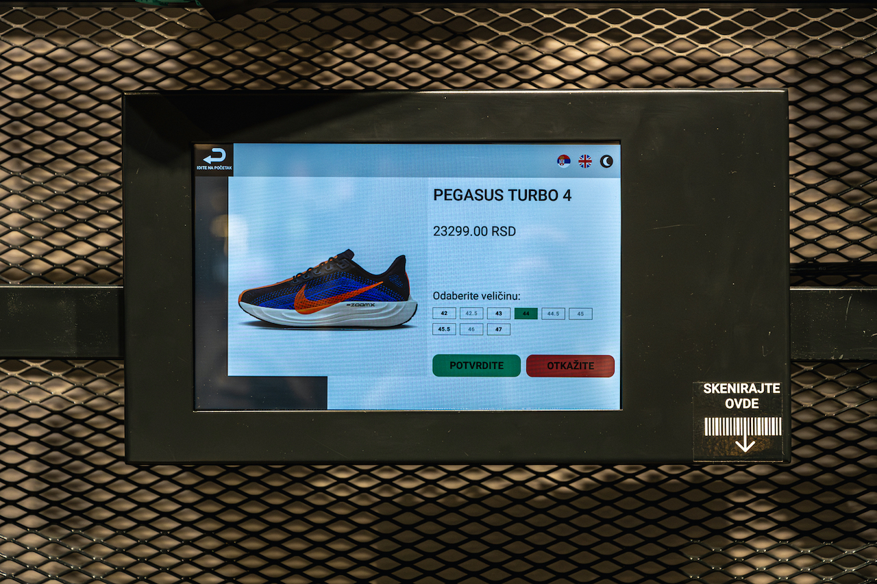 Ova inovativna platforma predstavlja jednostavan automatizovani sistem koji omogućava kupcima da bez čekanja poruče svoje omiljene modele patika ili odeće. Kupci biraju željene artikle na tabletima, a porudžbine se automatski šalju u magacin. Odatle, artikli dolaze automatizovanom trakom do prodajnog pulta, čineći celokupnu proceduru brzom i besprekorno organizovanom. Kupci mogu pratiti status svojih porudžbina na ekranima unutar radnje, što dodatno unapređuje transparentnost i efikasnost procesa.