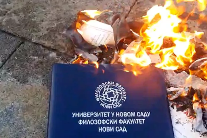 Sramota zbog besramnih: Profesorka SPALILA diplome ispred Skupštine (VIDEO)