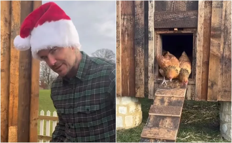 Bivši fudbaler je posuo malo hrane van kokošinjca svojih ljubimaca kako bi oni izašli i pozdravili kameru. Osim kokošaka, David je dobio i petla.