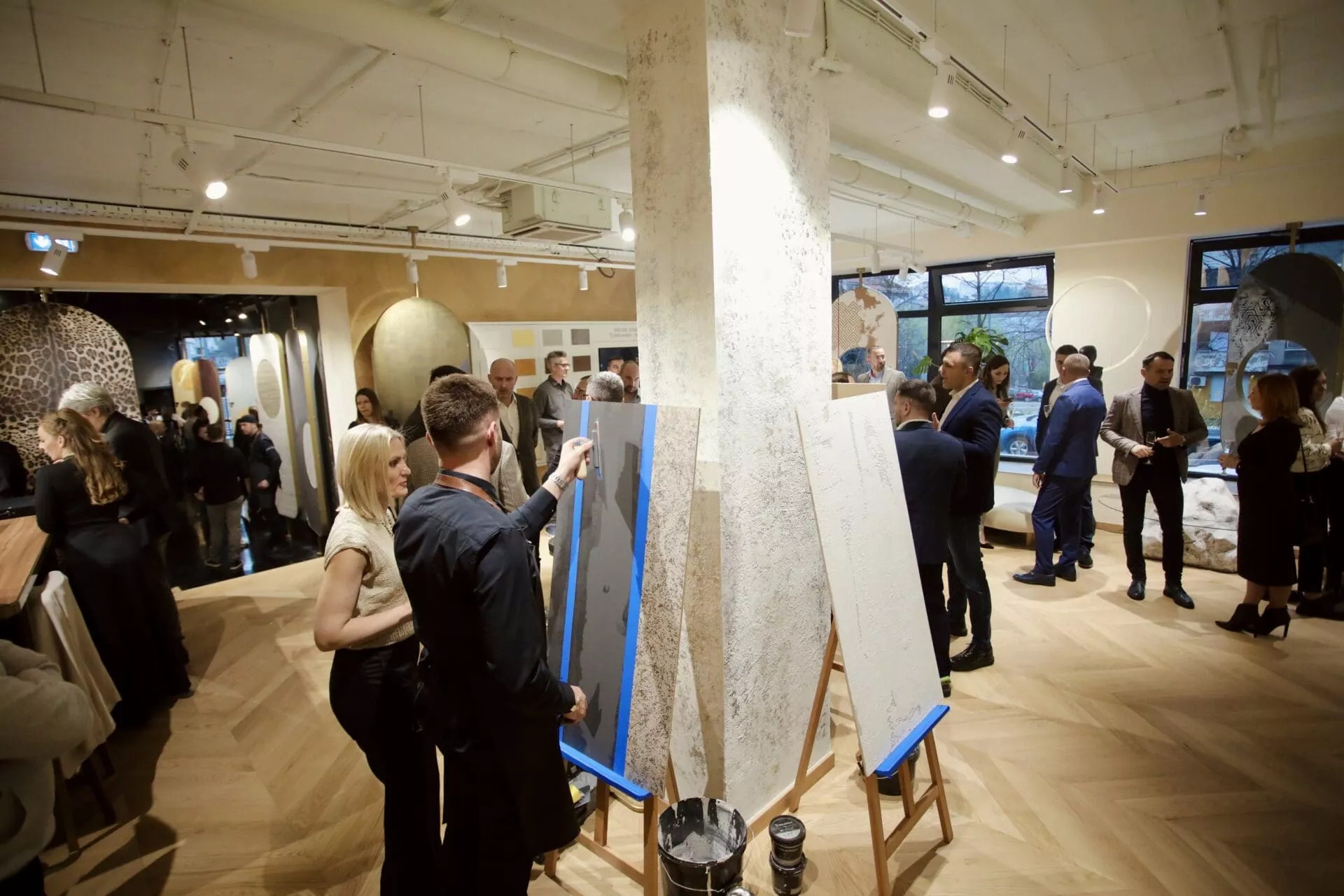 Svečano otvaranje DÉCOR STUDIO BEKAMET ROMA bilo je propraćeno prigodnim programom uz umetnički performans Dan Mariana, umetnika specijalizovanog za dekorativne zidne tehnike, koji je na licu mesta izveo DÉCOR U MOMENTUMU oživljavajući površine i kreirajući prava mala remek dela od dekorativnih tehnika i tapeta.