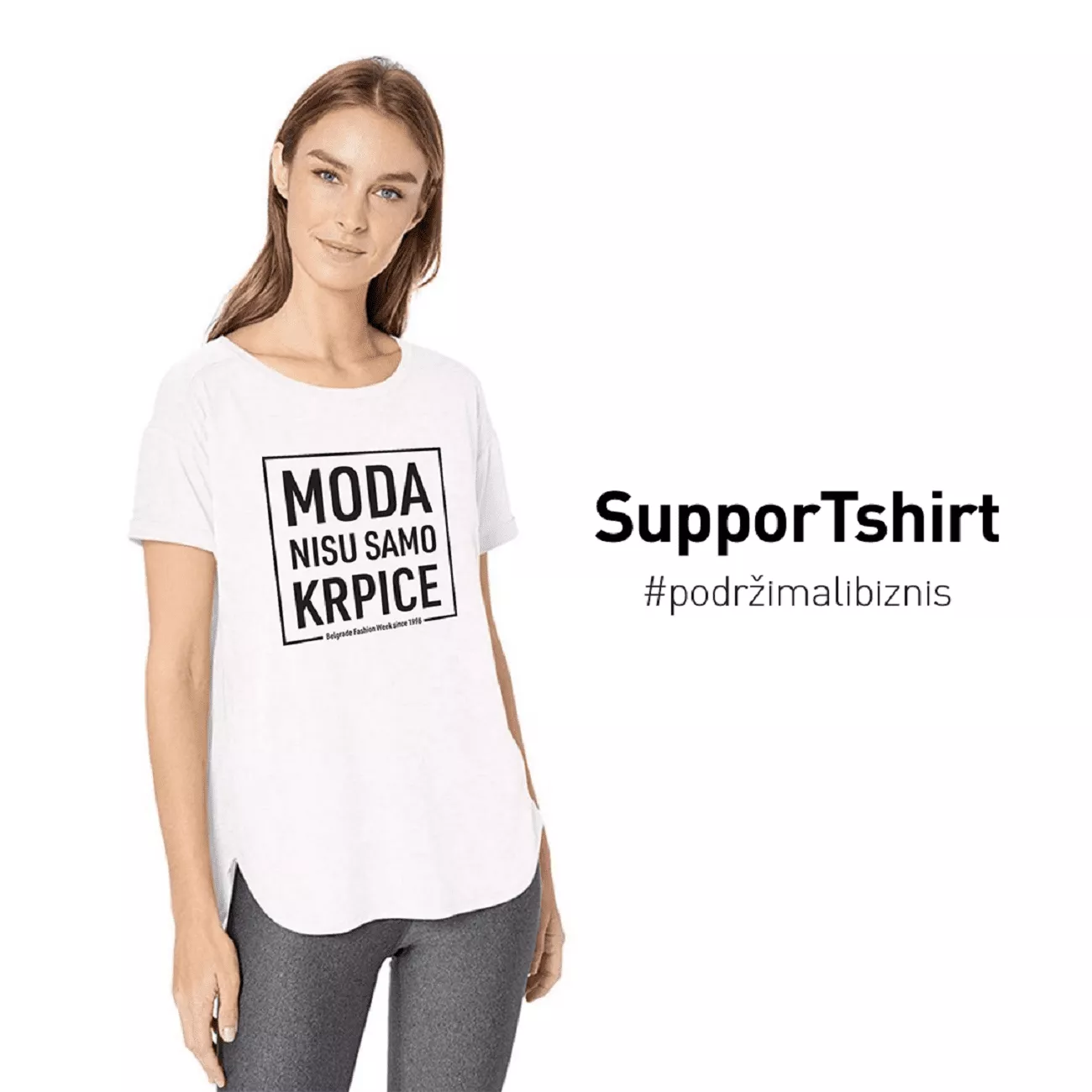 Majice su deo projekta SUPPORTSHIRT, koncipiranog kao akcija solidarnosti sa samostalnim beogradskim dizajnerima okupljenim u Belgrade Design Districtu i nekolicinom najatraktivnijih concept shop-ova u gradu čiji su mali biznisi ugroženi tokom ove pandemije. Kupovinom majice priključujete se pokretu koji podržava domaće proizvode, žensko i kreativno preduzetništvo; izražavate stav da se imamo za šta boriti i da u toj „borbi“ treba da budemo ujedinjeni.
