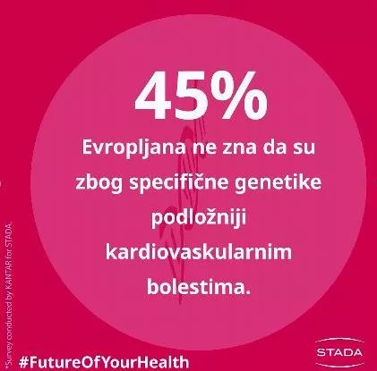 Presudan uticaj na zdravlje srca nema samo način života: kao i kod mnogih bolesti, naši geni takođe mogu znatno uticati na razvoj srčanih bolesti. Ipak, tek svaki drugi Evropljanin (55 odsto) zna da rizik za razvoj kardiovaskularnih bolesti može da bude nasledan. Ovo se odnosi na svega 40 odsto ispitanika u Britaniji. Stanovništvo u Finskoj je mnogo prosvećenije: 82 odsto je svesno da okidač za kardiovaskularne bolesti može biti u njihovoj sopstvenoj porodici. Kada je reč o Srbiji, čak 73 odsto ispitanika odgovorilo je da zna da geni mogu biti razlog za razvoj bolesti srca i krvnih sudova.
