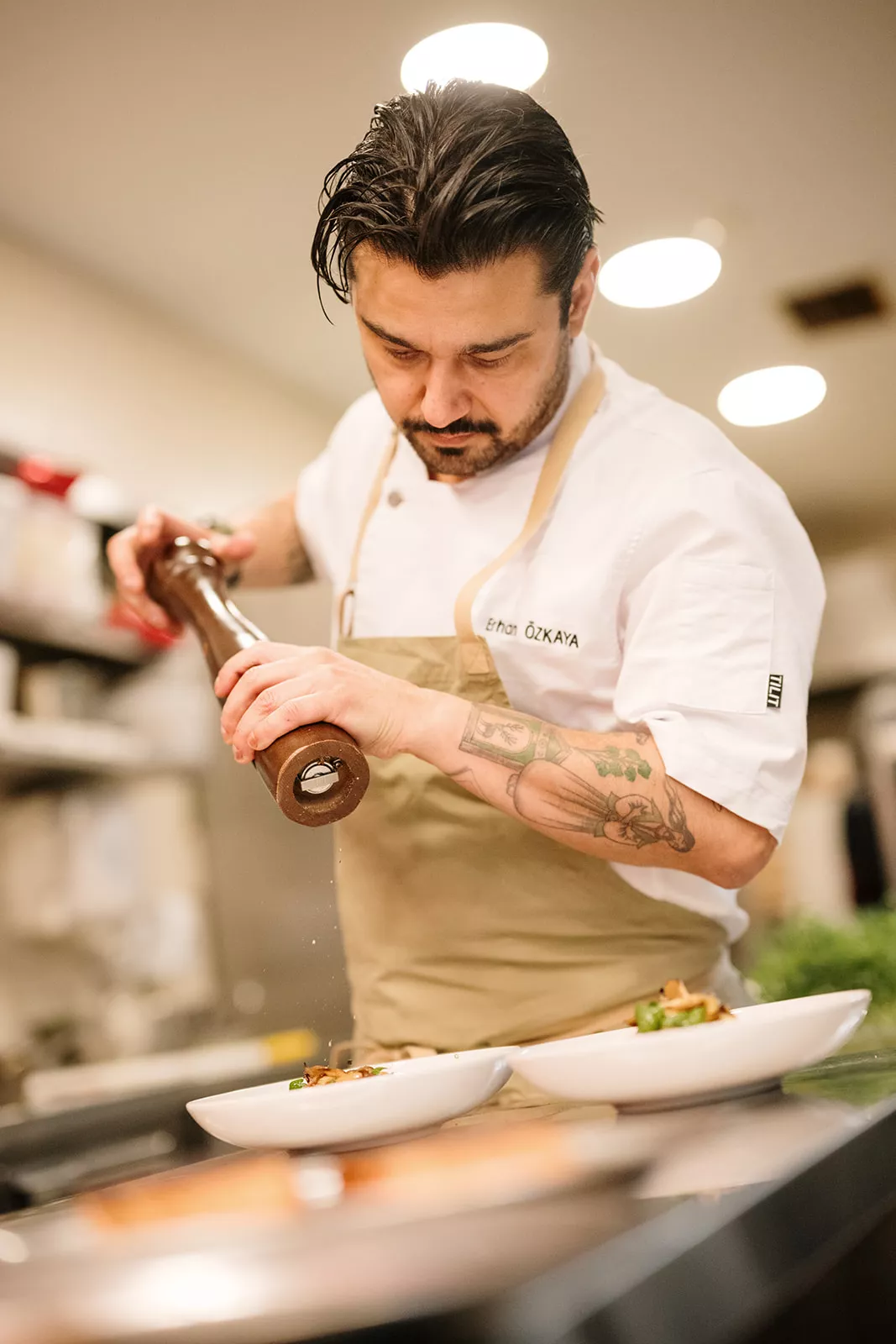 Ozkaya, čija karijera obuhvata rad u prestižnim restoranima od Majamija do Istanbula, važi za majstora u spajanju različitih kuhinja sa dubokim poštovanjem prema svojim turskim korenima.