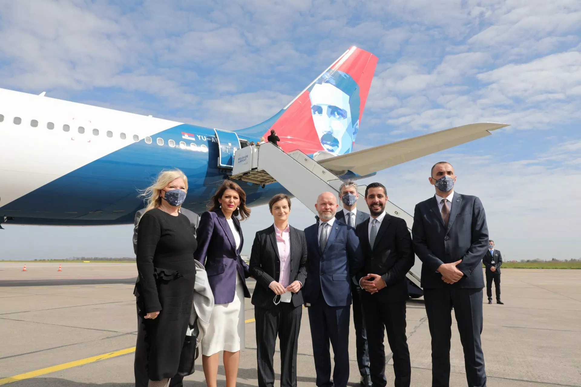 Erbas A330, koji nosi ime i stilizovani lik najslavnijeg srpskog naučnika i pronalazača Nikole Tesle, ispraćen je uz prisustvo predsednice Vlade Srbije Ane Brnabić.