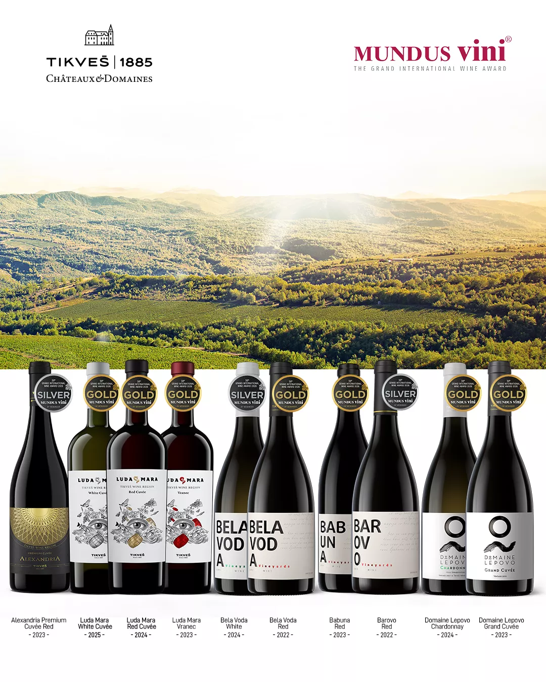 Na ovom izdanju takmičenja, koje se održava u Nemačkoj i okuplja hiljade vina iz više od 40 zemalja, zlatnim medaljama nagrađena su sledeća vina: Bela Voda Red 2022, Babuna Red 2023, Luda Mara Red Cuvée 2024, Luda Mara White Cuvée 2025, Luda Mara Vranec 2023, Domaine Lepovo Grand Cuvée 2023 i Domaine Lepovo Chardonnay 2024. Srebrnim medaljama nagrađena su sledeća vina: Barovo Red 2022, Alexandria Premium Cuvée Red 2023 i Bela Voda White 2024.