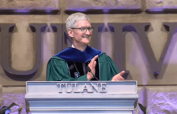 „Postoji izreka da ako radite ono što volite, nećete raditi ni dan u životu. U Eplu sam naučio da je to totalna glupost“, rekao je Kuk u svom govoru na Univerzitetu Tulejn u Nju Orleansu.