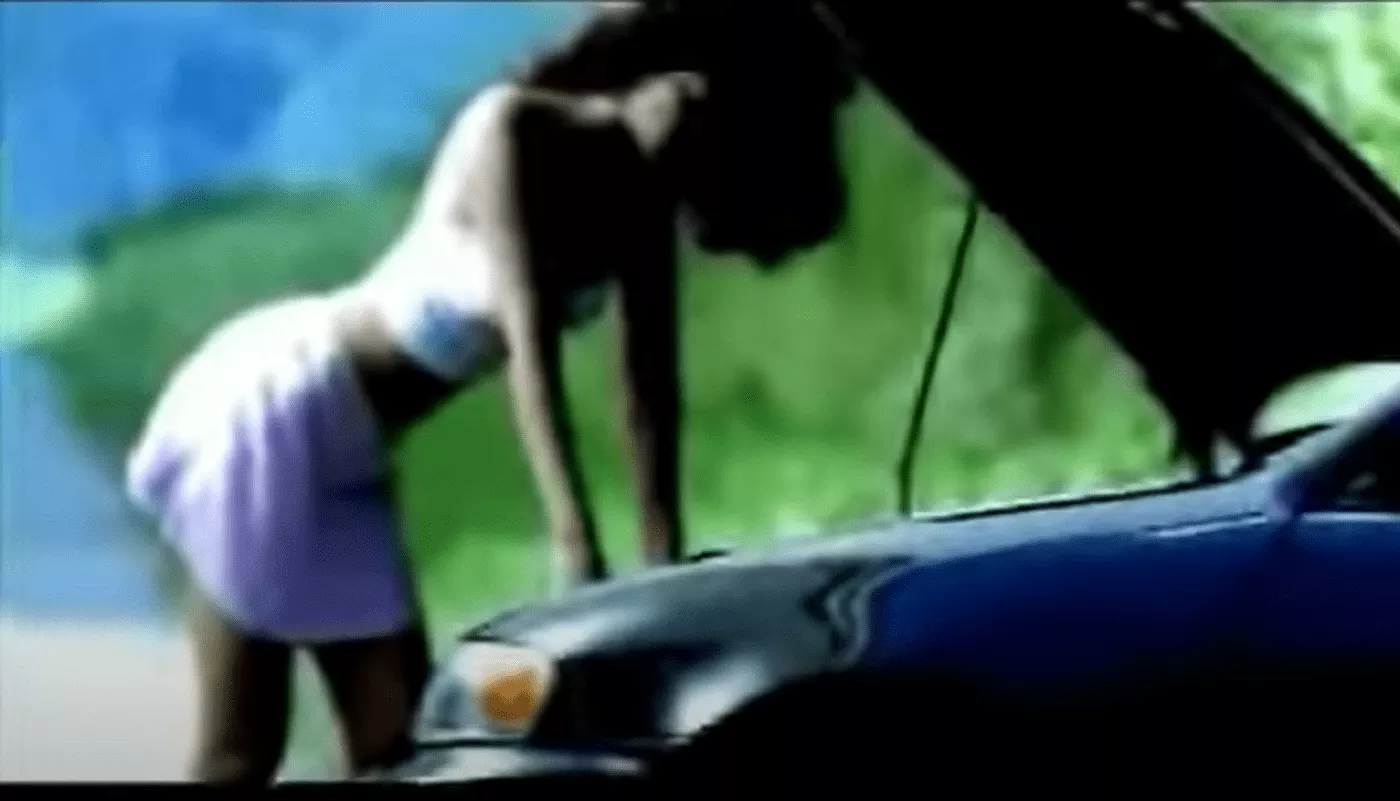 Reklama počinje scenom na kojoj atraktivna devojka u suknji i majici stoji pored puta i čeka pomoć, dok je hauba na njenoj Tojoti podignuta. Na putu se pojavljuju momci koji joj se približavaju kolima, a ona ide ka njima. U jednom trenutku vozač zaobilazi devojku, a drugi negoduje jer je očekivao da će stati.