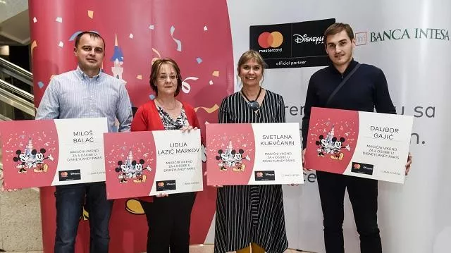 Banka Intesa je proglasila pobednike nagradne igre „Banca Intesa i Mastercard vas vode u Disneyland® Paris na proslavu 90 godina Mickey Mouse magije“, a četvoro srećnih dobitnika osvojilo je vikend putovanje sa po još tri osobe u Diznilend u Parizu (Disneyland® Paris).